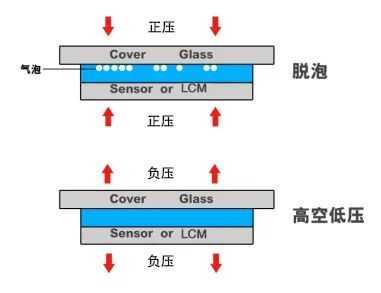 4. 高空低压测试,看是否有气泡反弹现象,OCA的脱泡过程,是在外界正压条件下,胶体将气泡包裹分散吸收;高空低压测试是在不同温度的真空条件,看被胶体包裹分散吸收的内部气泡是否会重新聚集出现;该测试模拟空运、高山高原、太空等环境下的应用,在一定程度上也可以看做是脱泡的逆过程