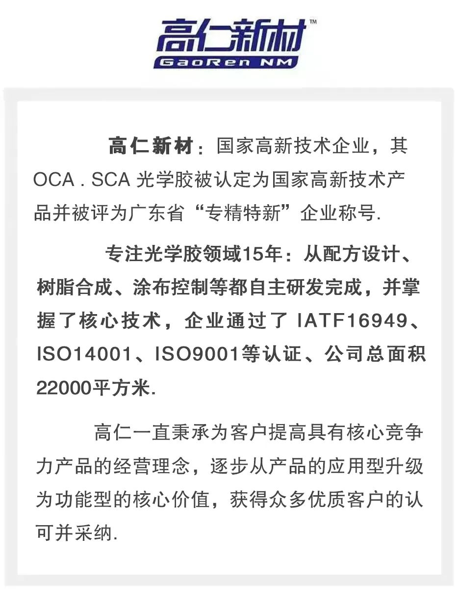 解决贴合mura的300μm OCA与车载UV阻隔OCA荣获杰出奖项