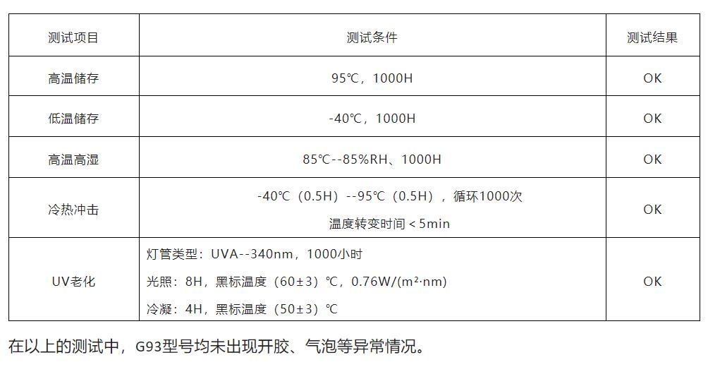 ③环测性能不佳,在老化测试时容易产生气泡、开胶等异常,出货存在反弹风险。